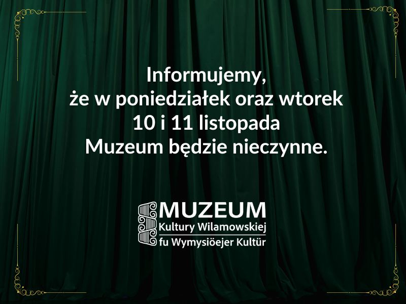 Informujemy, że w poniedziałek oraz wtorek 10 i 11 listopada Muzeum będzie nieczynne.