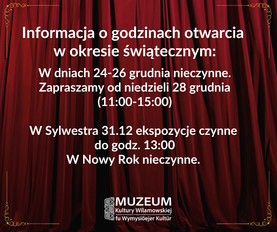 W dniach 24-26 grudnia nieczynne.Zapraszamy od niedzieli 28 grudnia (11:00-15:00)