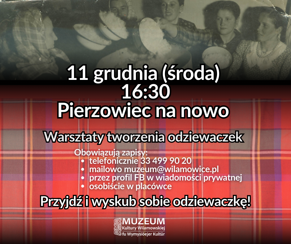 Długie, zimowe wieczory sprzyjają wieczornym spotkaniom. Tym razem zapraszamy w 𝘀́𝗿𝗼𝗱𝗲̨ 𝟭𝟭 𝗴𝗿𝘂𝗱𝗻𝗶𝗮 𝗼 𝗴𝗼𝗱𝘇. 𝟭𝟲:𝟬𝟬 𝗻𝗮 𝘄𝗮𝗿𝘀𝘇𝘁𝗮𝘁𝘆 𝘄 𝘀𝘁𝘆𝗹𝘂 "𝗽𝗶𝗲𝗿𝘇𝗼𝘄𝗰𝗮". Choć niegdyś uczestnicy takich spotkań skubali pierza, tym razem zapraszamy do skubania... odziewaczek.