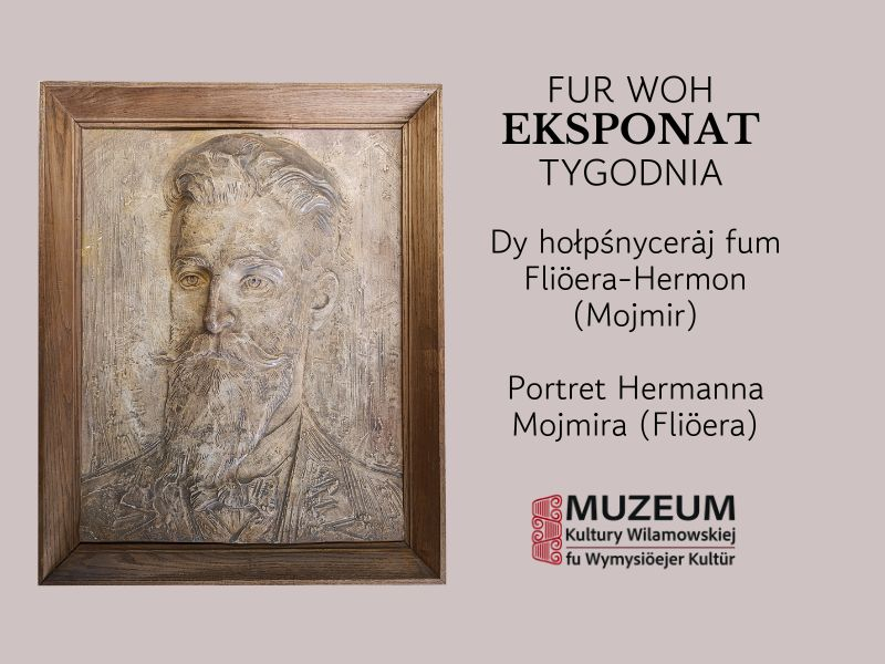 Dziś prezentujemy płaskorzeźbę przedstawiającą Hermanna Mojmira, wykonaną przez rzeźbiarza Karola Hukana w okresie międzywojennym. Hermann Mojmir urodził się w 1874 r. w Wilamowicach. Był najmłodszym bratem wilamowskiego poety Floriana Biesika, różnica w nazwisku wynika z późniejszej zmiany. Studiował medycynę na Uniwersytecie Jagiellońskim w Krakowie, a później pracował jako lekarz i nauczyciel gimnazjalny we Lwowie. Był też jednym z założycieli skautingu (późniejszego harcerstwa). W Wilamowicach jest on znany z tego, że był autorem słownika języka wilamowskiego oraz wierszy w jego ojczystym języku, które zostały odnalezione w Paryżu w 2023 r. Zmarł w 1919 r., gdy jako lekarz wojskowy zaraził się od chorego na tyfus. Jest pochowany na Cmentarzu Rakowickim w Krakowie.
